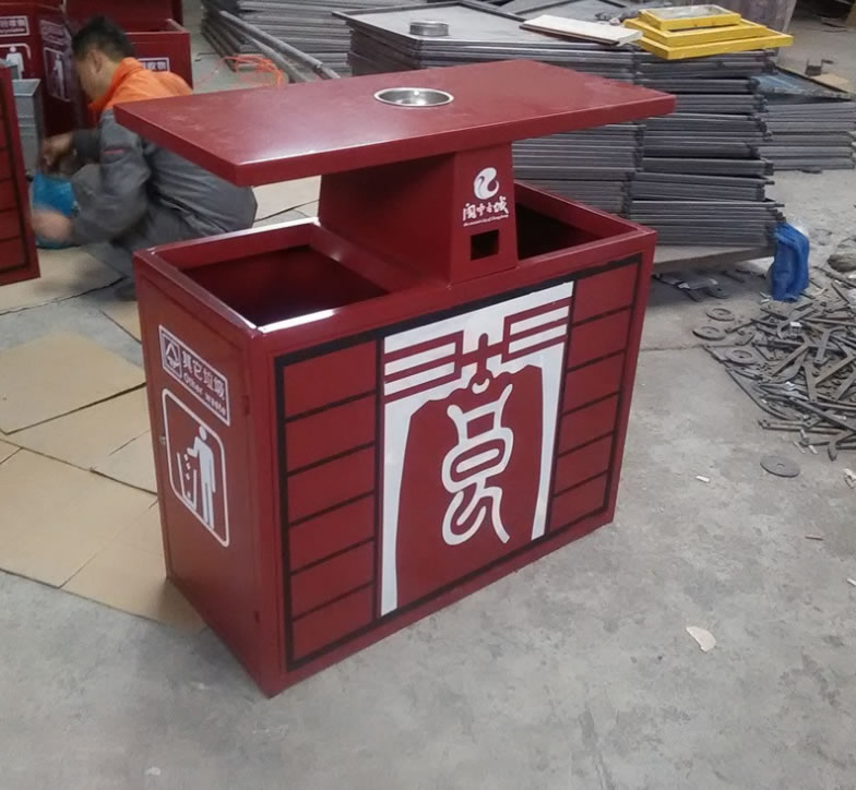 【噴涂工藝】垃圾桶經磷化噴砂處理后采用戶外塑粉靜電噴涂再經烘箱高溫烘烤